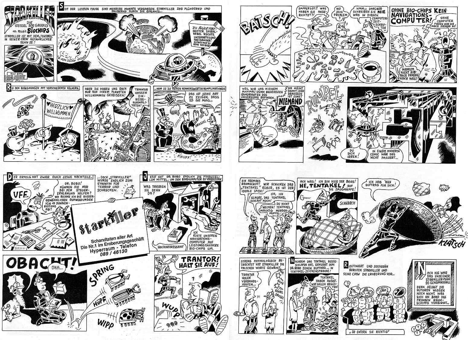 Mit Folge 10 begann für mich so etwas wie die goldene ära der Starkiller-Geschichte (die Bill-Gates-Doppelgänger-Handlung war auch nicht schlecht, aber bis dahin ist es noch ein paar Episoden hin). Die Charaktere waren soweit etabliert, Texter und Zeichner hatten sich eingegrooved. Inspiriert und frohen Mutes wagten wir uns eine Doppelseite mit neuem Handlungsfaden und netten Detail-Gags.