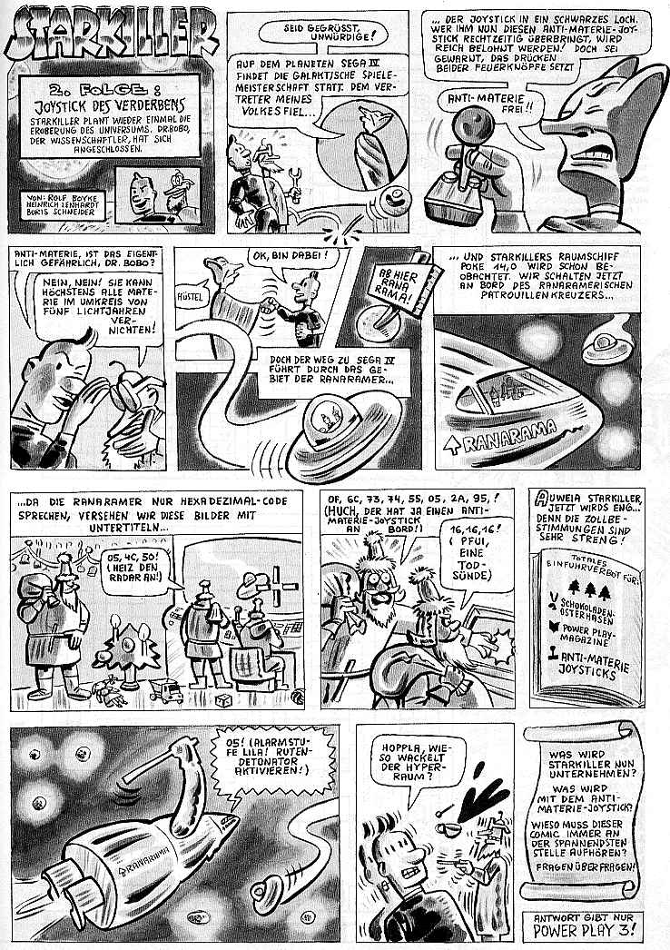 Man beachte in dieser Starkiller-Folge den Einfluß von Perry-Rhodan-Terminologie ("Wieso wackelt der Hyperraum?"). Mein Lieblings-Zitat lautet aber "Anti-Materie... ist das eigentlich gefährlich, Dr. Bobo?" -- da merkt man wieder, daß Boris mal im Physik-Leistungskurs war :) |